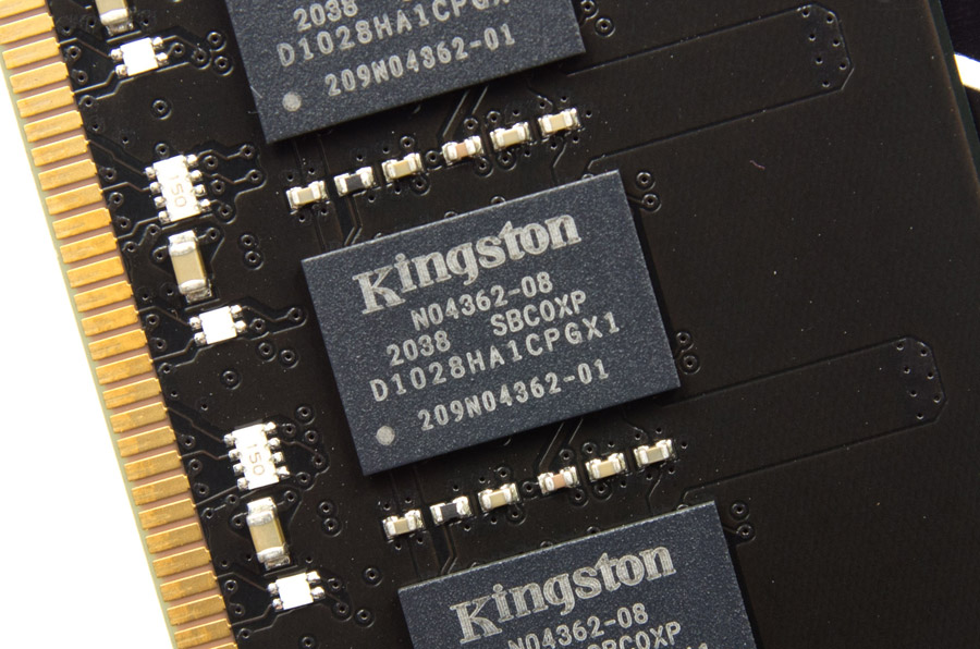 К чипам половинки крепятся за счет «термолипучки». Используются микросхемы памяти Kingston, какие на самом деле применялись кристаллы остается лишь догадываться. Возможно, это Hynix CJR, а может и Nanya.