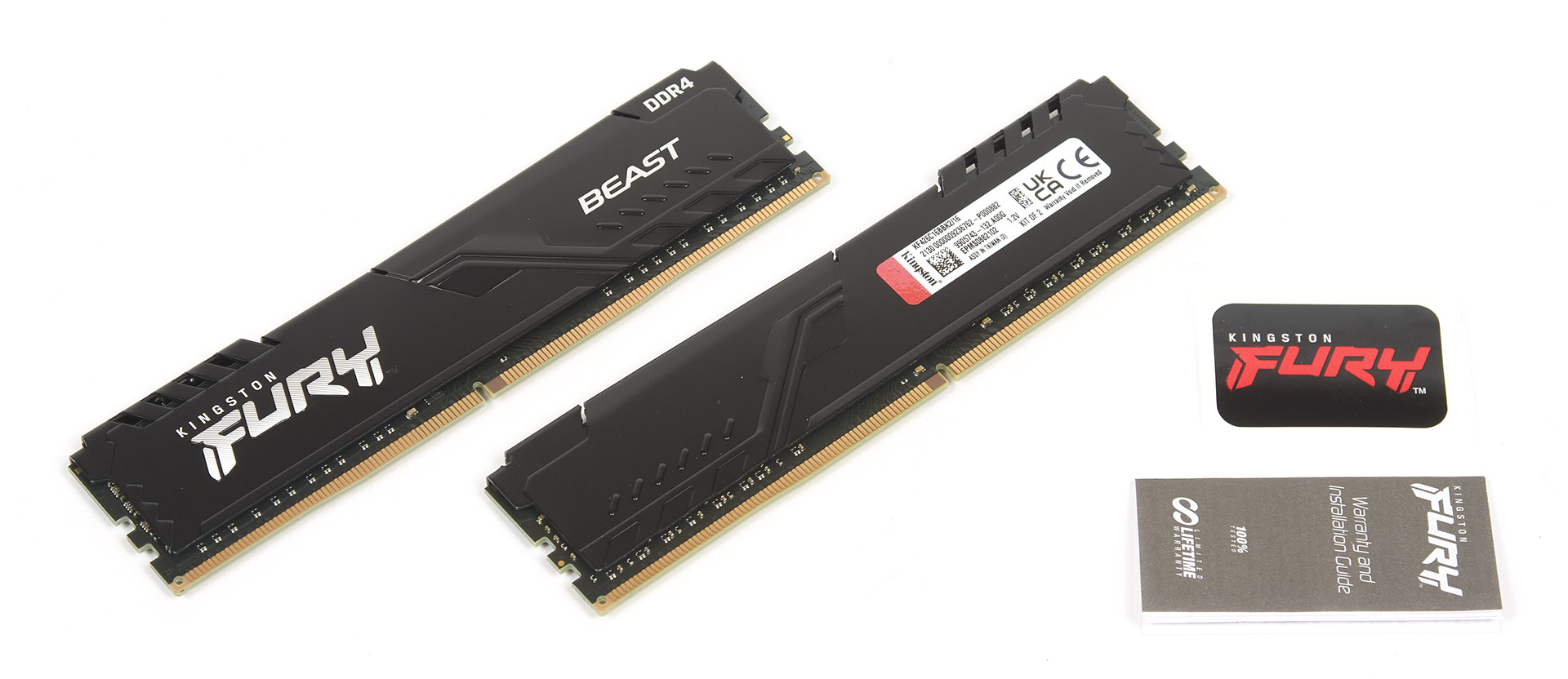 Внутри блистера два модуля ОЗУ, наклейка-логотип Kingston Fury, совмещенная с гарантией инструкция по установке.