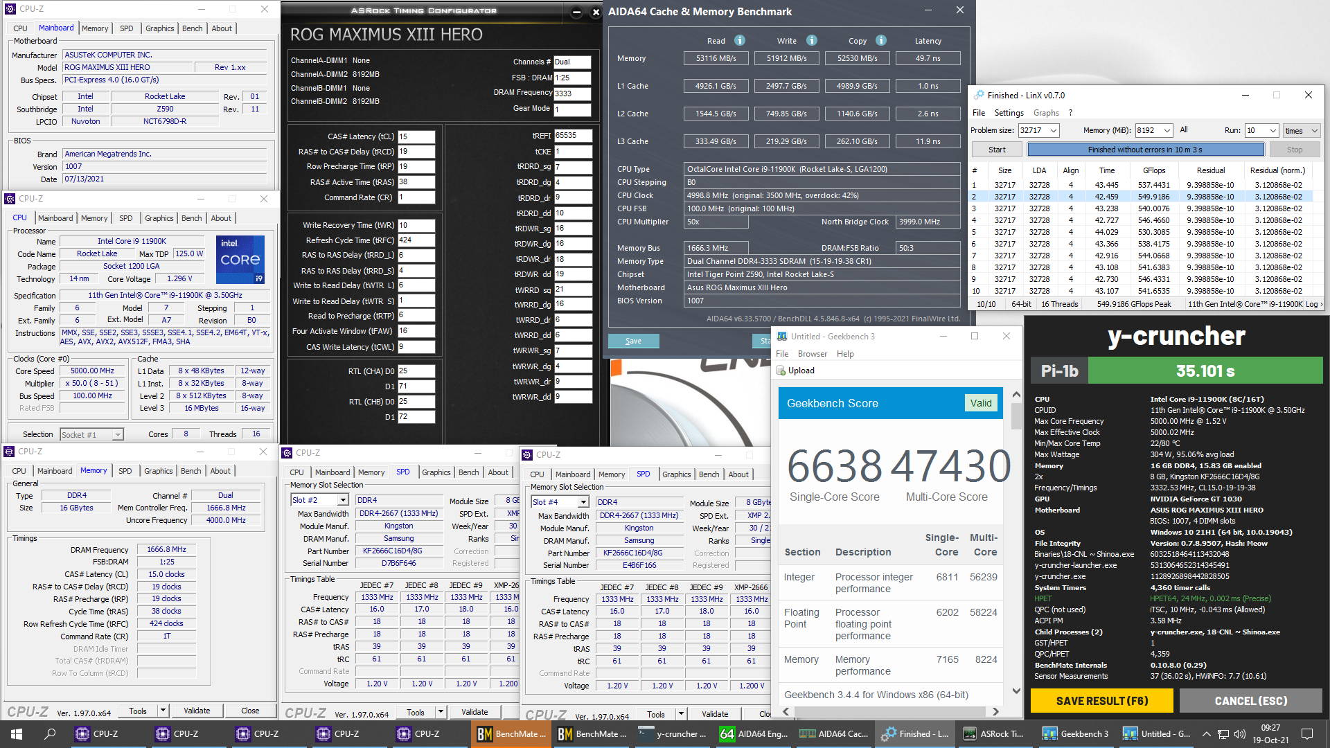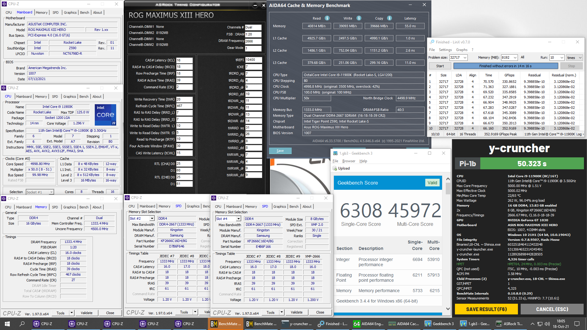 - материнская плата: ASUS ROG Maximus XIII Hero (UEFI 1107);