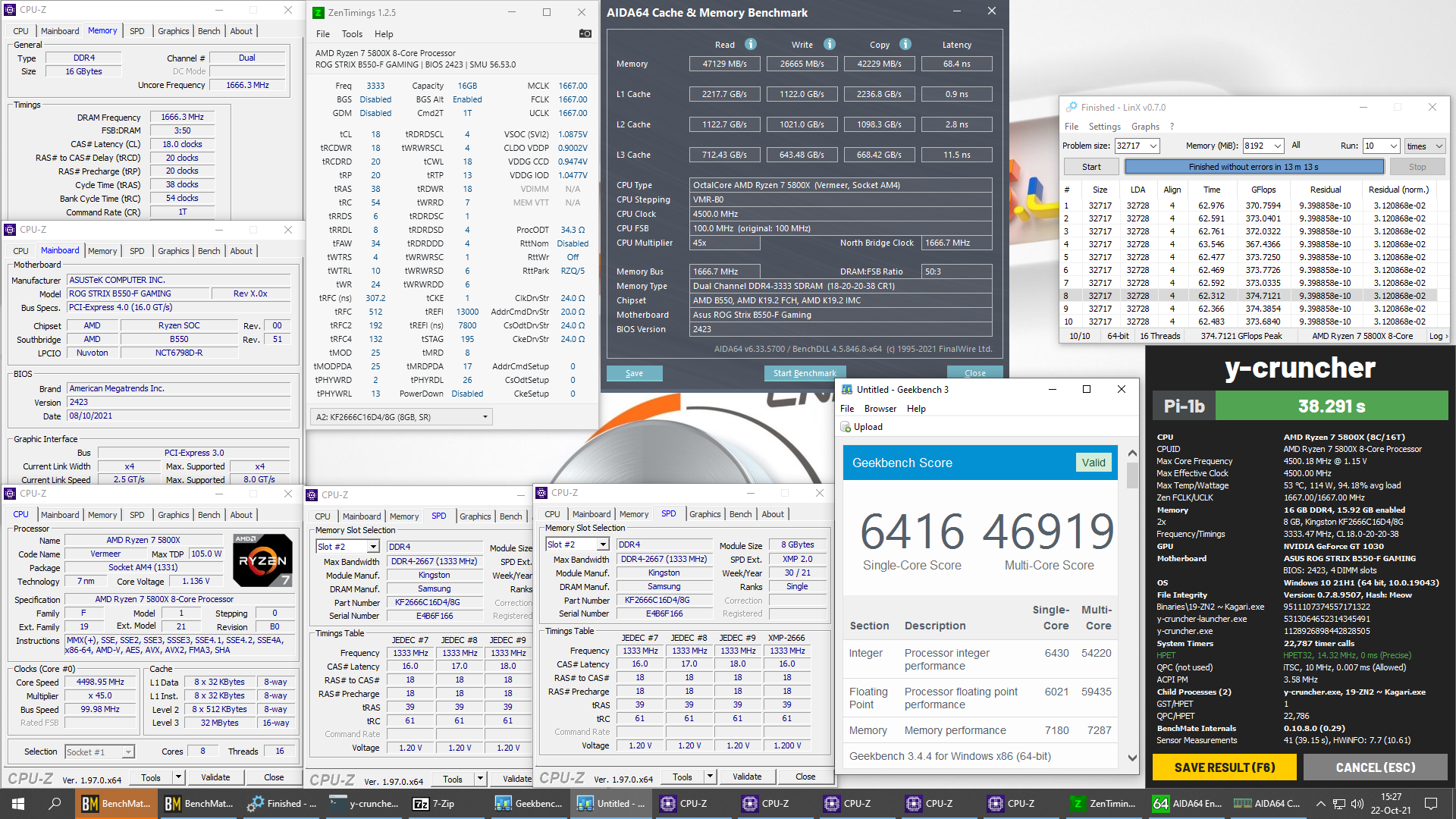 - материнская плата: ASUS ROG Strix B550-F Gaming (UEFI 2423, AGESA 1.2.0.3c );