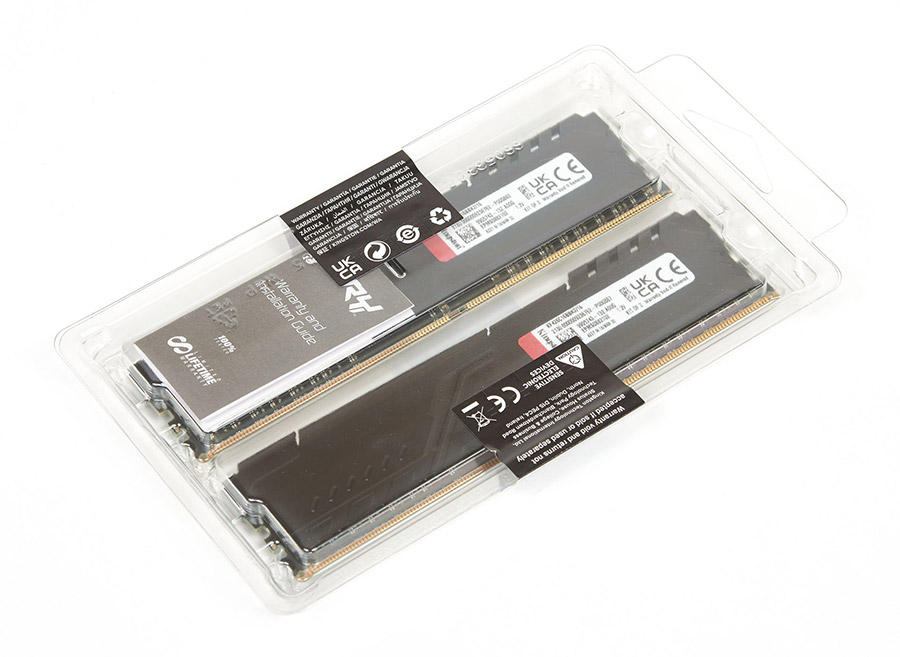 Внутри блистера два модуля ОЗУ, наклейка-логотип Kingston Fury, совмещенная с гарантией инструкция по установке.
