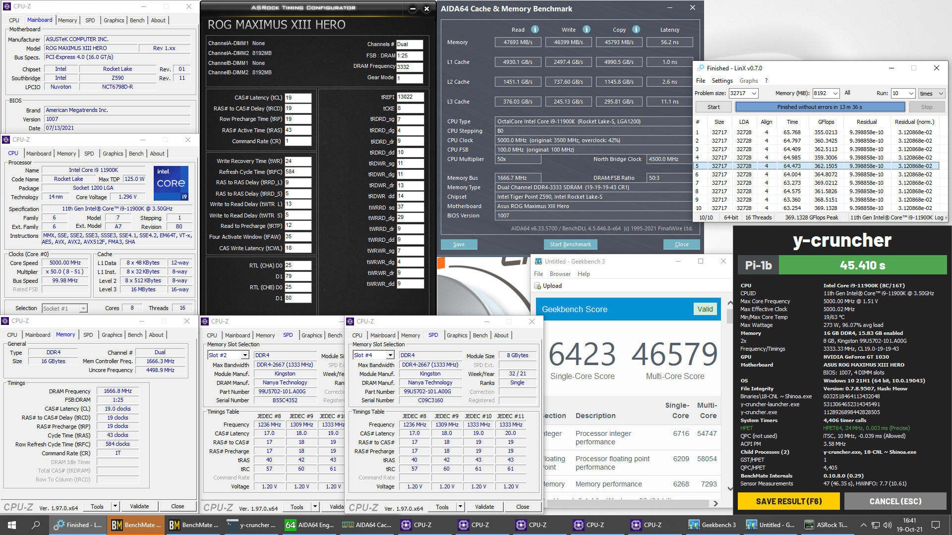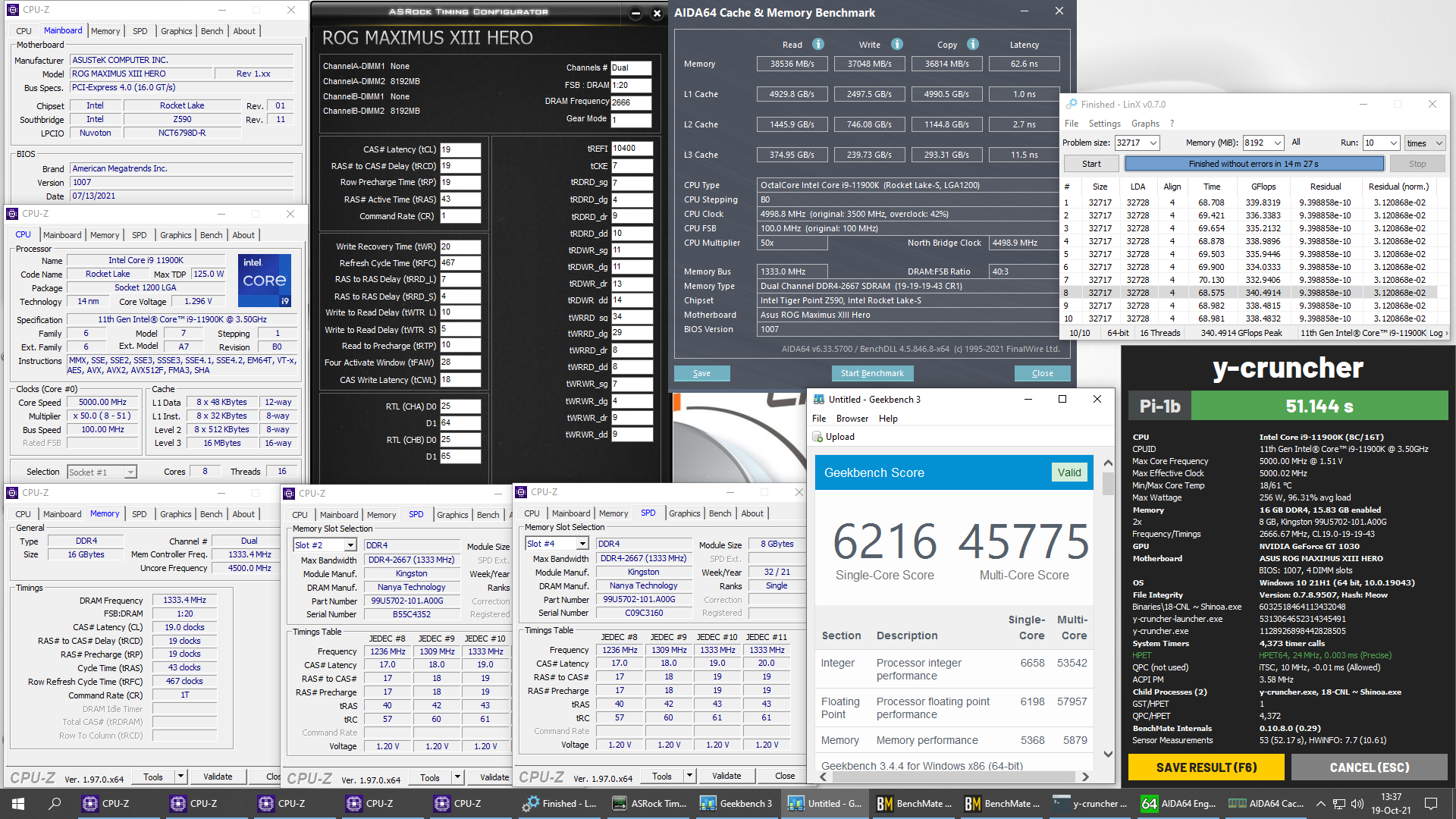 - материнская плата: ASUS ROG Maximus XIII Hero (UEFI 1107);