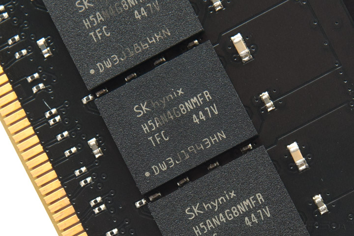 Учитывая объем планок, на каждой стороне распаяно по восемь микросхем SK hynix H5AN4G8NMFR-TFC объемом 4 Гбит, рассчитанных на частоту 2133 МГц с CL16.