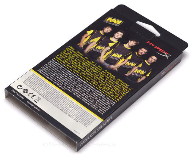 Тыльная сторона коробки содержит краткое повествование о команде Na’Vi и фото пятерых её нынешних участников. О самой памяти практически ничего не написано.
