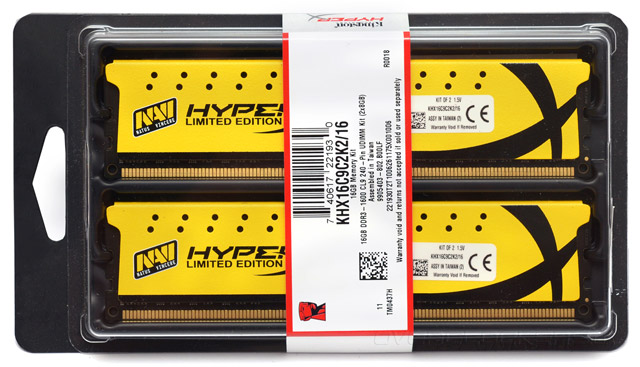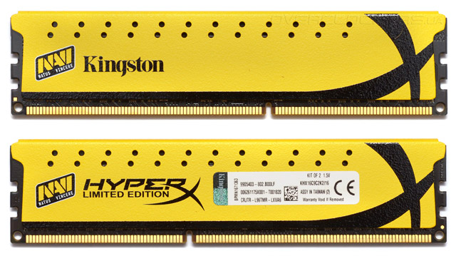 Разумеется, сотрудничество с профессиональными геймерами носит чисто маркетинговый характер и по сути заключается в подписании взаимовыгодных договоров и использовании логотипов в дизайне продукции. Вряд ли киберспортсмены принимают какое-либо участие в проектировании и производстве технической составляющей. Но большинству наших читателей маркетинговые уловки и внешнее оформление комплектующих не интересны. Гораздо важнее реальные возможности «железяк» и их разгонный потенциал. Поэтому мы решили протестировать комплект памяти Kingston HyperX KHX16C9C2K2/16 из новой линейки Na’Vi Edition.