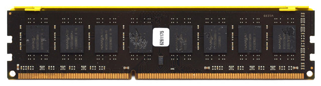Объём каждой планки в 8 ГБ набран шестнадцатью 4-гигабитными чипами, по восемь с каждой стороны модуля.
