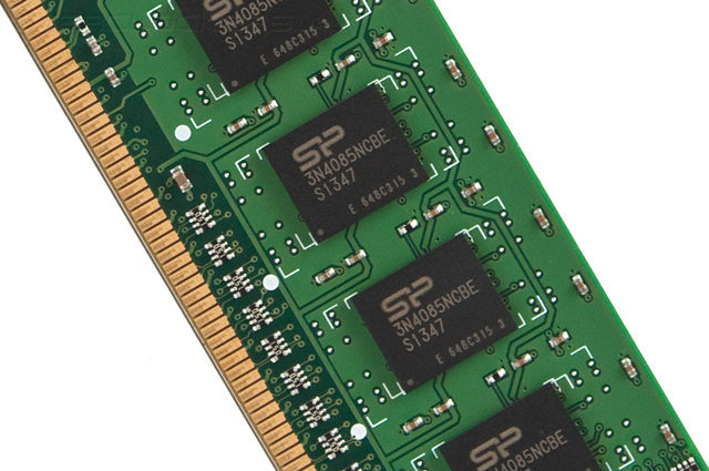 Как уже отмечалось, на лицевой стороне платы расположены все восемь микросхем. Маркировка — Silicon Power. Учитывая, что эта компания память не производит, а использует сторонние чипы, то понять, кто же настоящий разработчик очень сложно. Вполне возможно, что это Nanya, но не факт.