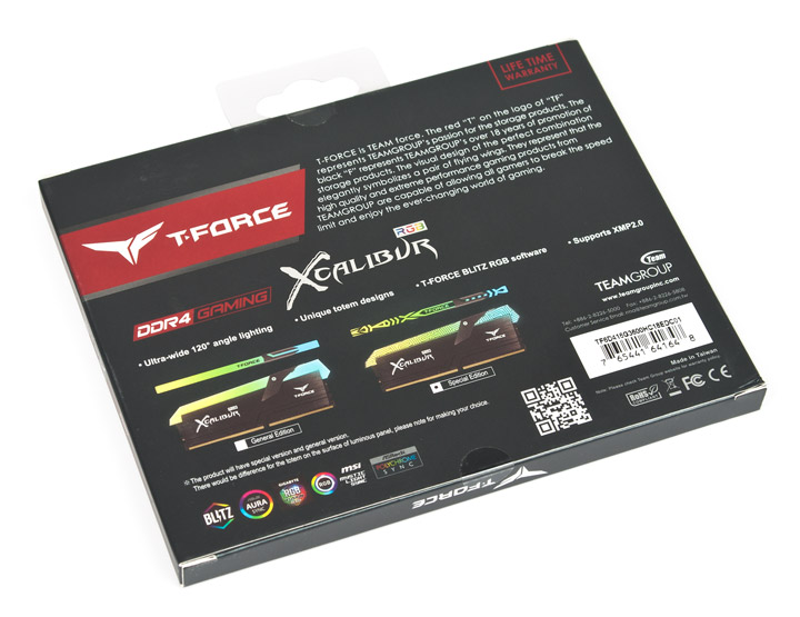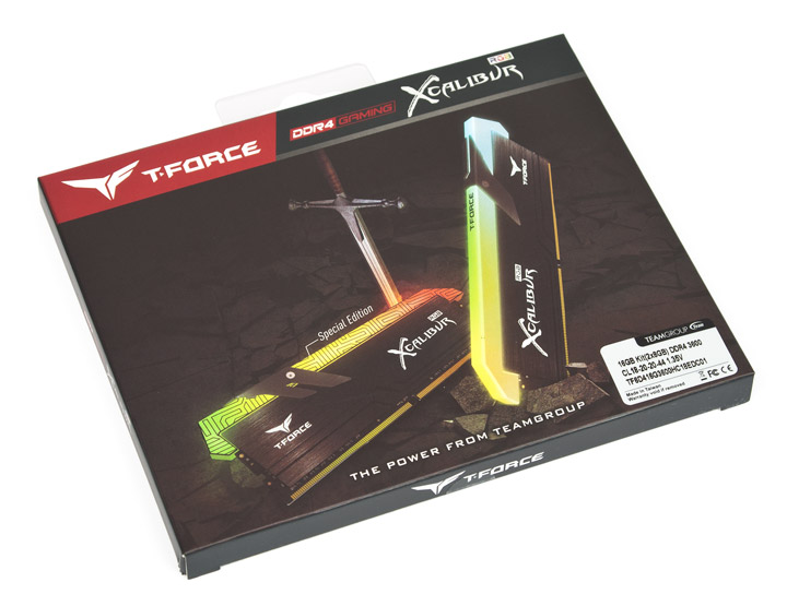 Новинка относится к представленной в прошлом году серии T-Force Xcalibur RGB, которая включает два набора с частотой 3600 и 4000 МГц, выполненных на базе чипов Samsung. К нам попал младший представитель этой линейки.