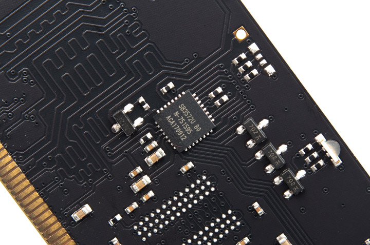 Как и обещал производитель, в рассматриваемом комплекте используются микросхемы Samsung, в данном случае с маркировкой K4A8G085WB-BCPB, которые рассчитаны на частоту 2133 МГц с таймингами 15-15-15. С другой стороны печатной платы можно обнаружить контроллер подсветки SB3572U.