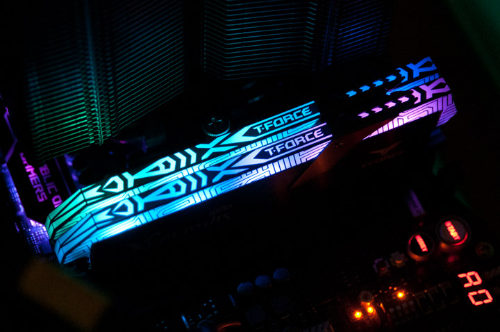 На световоде каждого модуля установлен дополнительный декоративный металлический элемент, похожий на свернутый логотип T-Force. Высота памяти составляет около 53 мм, что может стать проблемой при использовании габаритных процессорных кулеров.