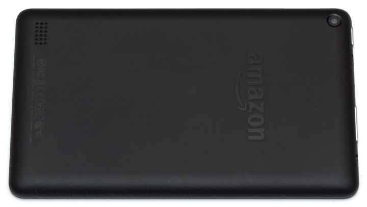 Тыльная поверхность выполнена из приятного на ощупь пластика, а в ее центре выгравирован глянцевый логотип компании-разработчика. Небольшие габариты и масса в 313 грамм позволяют удобно удерживать Fire как одной, так и двумя руками. Глубокая ширина рамки в данном случае пошла на пользу, и защищает сенсор от случайных касаний пальцев.
