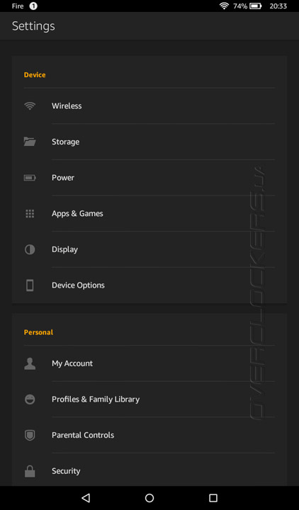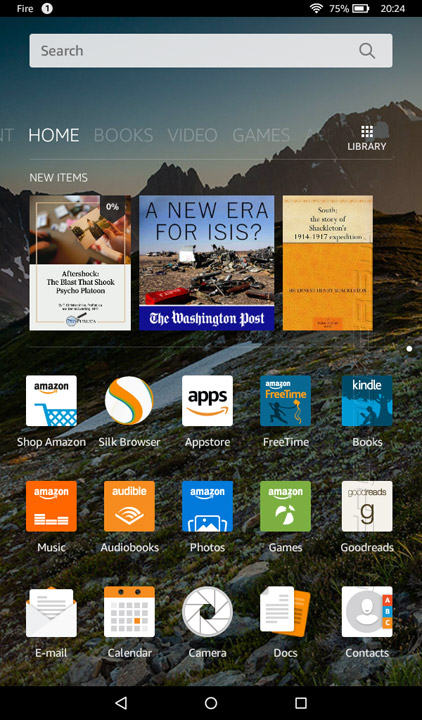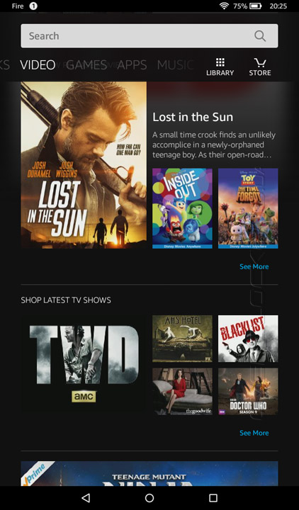 Интерфейс операционной системы FireOS 5.0 был значительно переработан, относительно лежащей в ее основе Android 5.0 Lollipop. Главный акцент, вполне ожидаемо, сделан на интеграцию фирменных сервисов и online-магазина от Amazon.