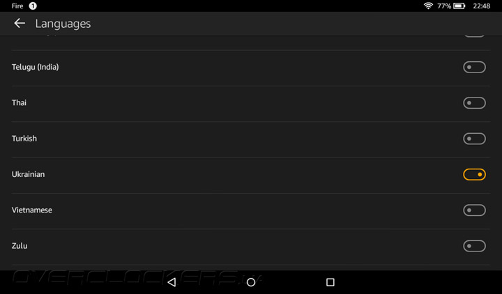 Поддержка украинского и русского языков реализована частично. Их можно выбрать в качестве языка ввода для клавиатуры, но интерфейс планшета по-прежнему остается в англоязычном варианте.