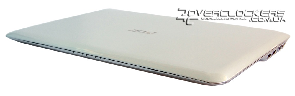 Компактный X-Slim X340 с 13-дюймовым дисплеем довольно тонкий и легкий. При габаритах 330 х 224 х 19,8 мм его вес составляет 1,3 кг. Рассматриваемый ноутбук выполнен в светло-серых тонах, но данная модель существует еще и в черном и в розовом исполнении. Верхняя крышка с лаковым покрытием имеет серебристо-молочный оттенок. Логотип MSI на ней подсвечивается.