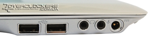Кроме того, что в компактном MSI X340 не нашлось места DVD-приводу и даже PCMCIA, у него еще и небогатый набор внешних интерфейсов. С правой стороны располагаются два порта USB, разъем для зарядного устройства, наушников и внешнего микрофона.