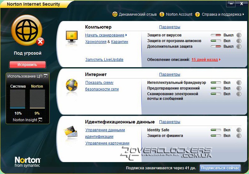 Norton Internet Security поставляется с двухмесячной подпиской.