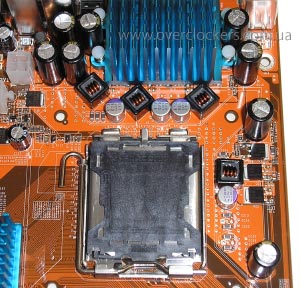 Плата, стандартно для Abit, оранжевой окраски и с синими радиаторами.