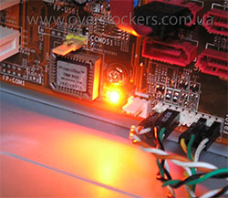 Ну и напоследок два светодиода, сигнализирующие о состоянии системы: красный - подача напряжения на материнскую плату, зеленый - работа системы.