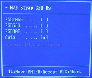 Коэффициент умножения процессора заблокирован на заводе :) . Частота памяти задается двумя параметрами. Первый N/B Strap CPU As со значениями PSB1066, PSB800, PSB533 и Auto.