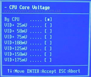 Напряжение на процессоре меняется до +0,175 В от номинала с шагом 0,025 В,