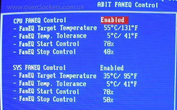 Также в этом пункте есть функция ABIT FANEQ Control по управлению процессорным и дополнительным кулерами.
