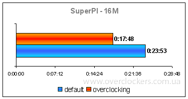 После разгона всей системы, время, затрачиваемое на просчет числа PI, уменьшилось на 6 минут, а это очень неплохо. В тесте от Futuremark также хороший результат как для Celeron.
