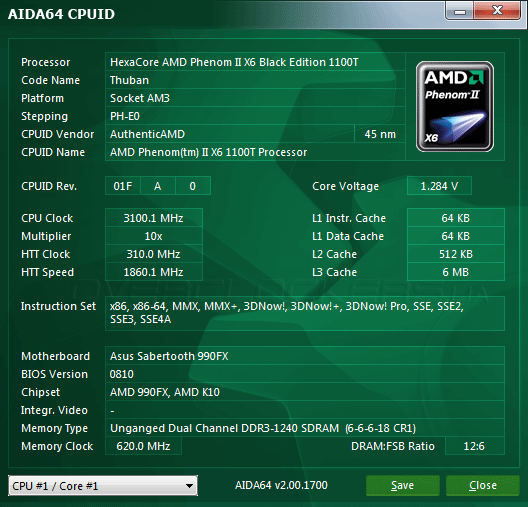 - процессор: AMD Phenom II X6 1100T (3,3 ГГц);