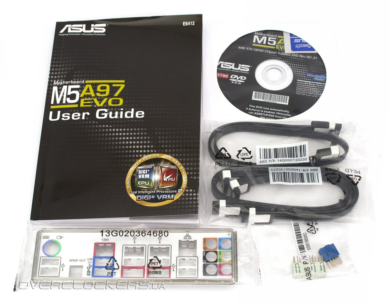 Похоже, в ASUS решили немного сэкономить на комплекте поставки, чего не скажешь о дизайне M5A97 EVO. Плата выглядит очень добротно благодаря внушительной системе охлаждения и применению качественной элементной базы во всех электрических цепях. Дальнейший осмотр выявляет множество других конструктивных решений, еще недавно считавшихся признаками продуктов старшего ценового диапазона.