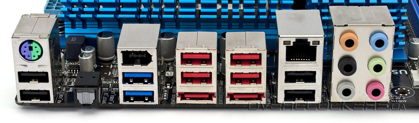 В качестве южного моста используется AMD SB950 — достаточно мощное и современное решение. Для подключения периферии служат 14 чипсетных портов USB 2.0, восемь из которых выведены на заднюю панель. Поддержка четырех высокоскоростных последовательных интерфейсов USB 3.0 обеспечивается парой контроллеров ASMedia ASM1042. При этом два разъема расположены на задней панели, а еще два можно подключить к внутреннему порту материнской платы. За поддержку IEEE1394 отвечает чип VIA 6308P, а сетевая подсистема основана на Realtek RTL8111E. В качестве звукового кодека используется восьмиканальный HDA кодек Realtek ALC892. Возможности южного моста по подключению шести дисковых устройств SATA 6 Гбит/с дополнены двумя портами eSATA 3 Гбит/с, которые функционируют благодаря дополнительному контроллеру JMicron JMB362. Накопители, подключенные к SB950, можно объединять в массивы RAID различных уровней. Четыре внутренних порта SATA имеют горизонтальную ориентацию, что позволяет избежать трудностей при установке графических адаптеров с массивными системами охлаждения.