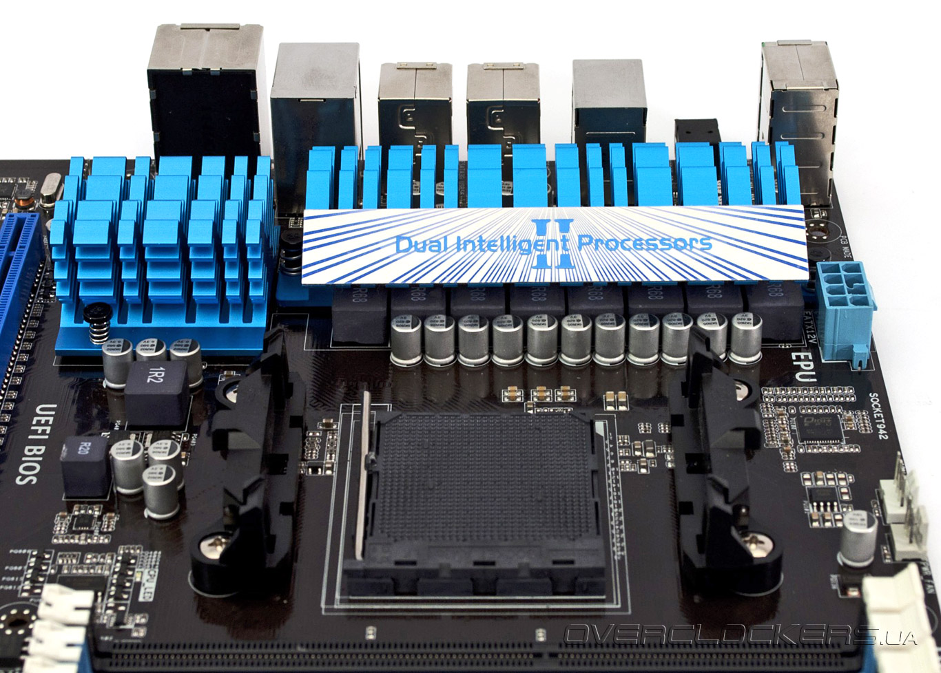 Обычно, после изучения дизайна мы переходим к рассмотрению прошивки, но, ввиду очевидного сходства дизайна обеих моделей, мы предлагаем ознакомиться с конструктивными особенностями ASUS M5A99X EVO.