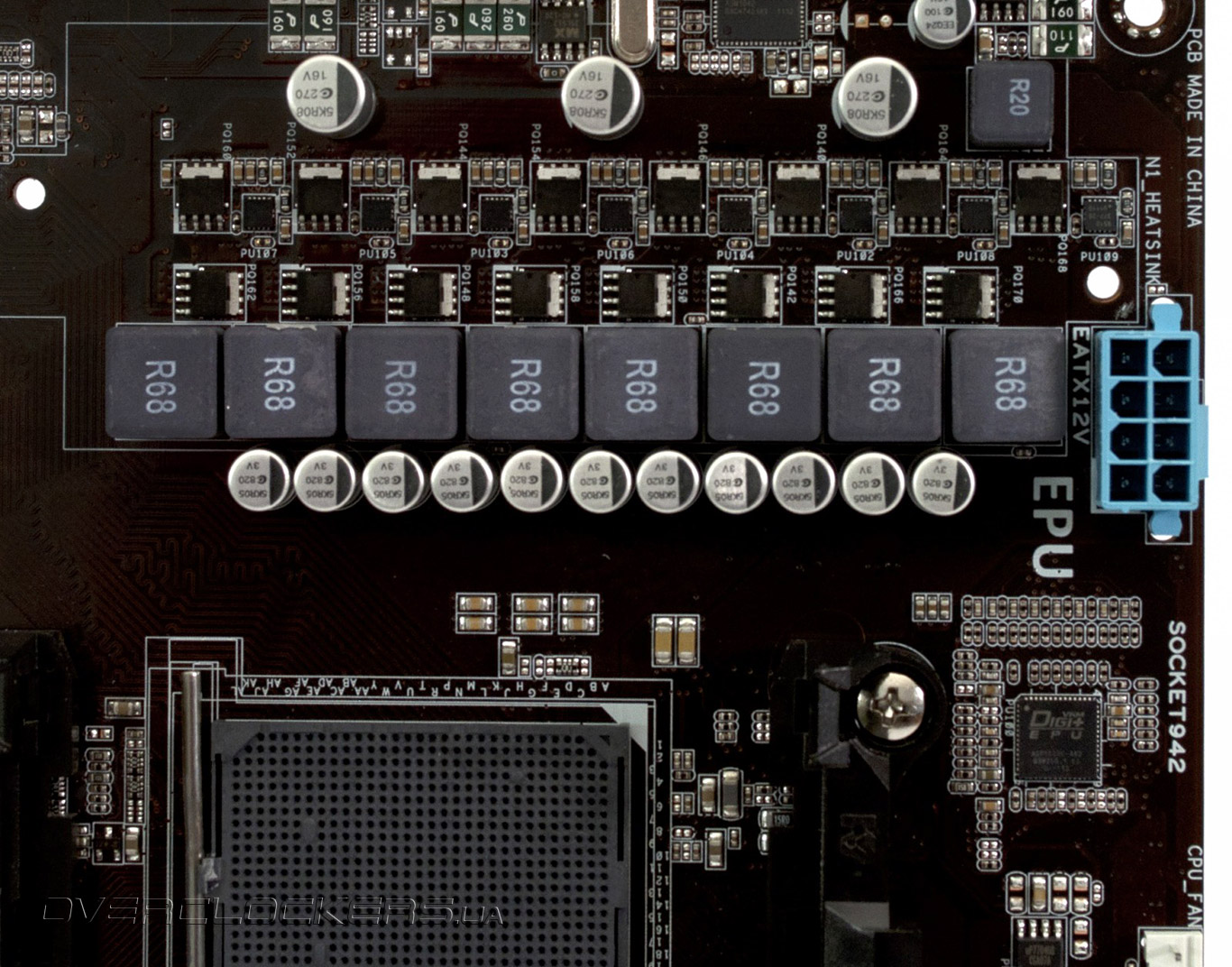 Радиаторы MOSFET и северного моста имеют внушительную площадь поверхности, так что о перегреве можно не беспокоиться. Южный мост отличается умеренным тепловыделением, он без труда обходится компактной конструкцией. Во время тестирования система охлаждения отлично справилась со своей задачей, как в штатном режиме, так и при разгоне.