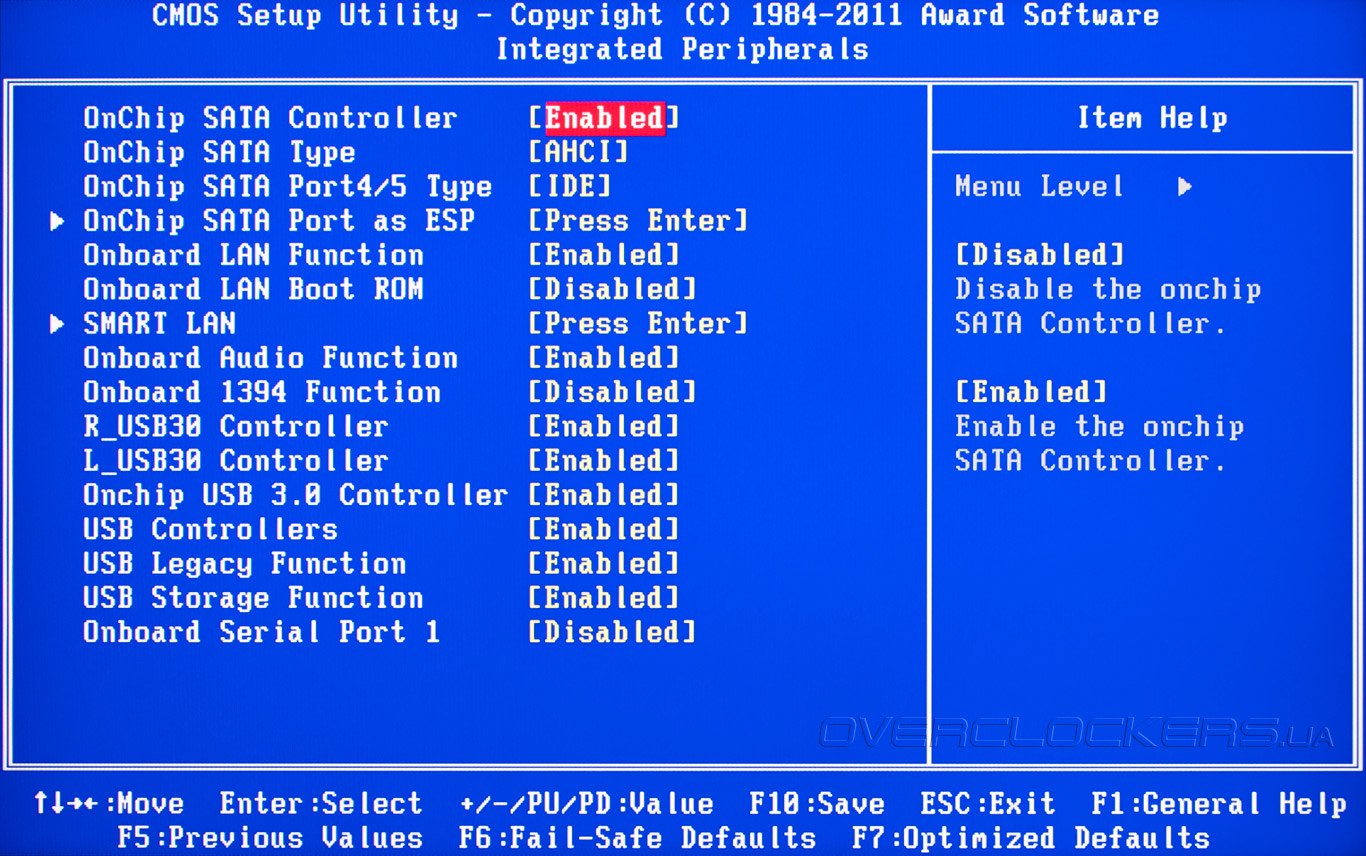 Меню Advacned Chipset Features отвечает за настройку дополнительных параметров системной логики, а управление многочисленными возможностями расширения Gigabyte GA-A75-UD4H находится в разделе Integrated Peripherals.