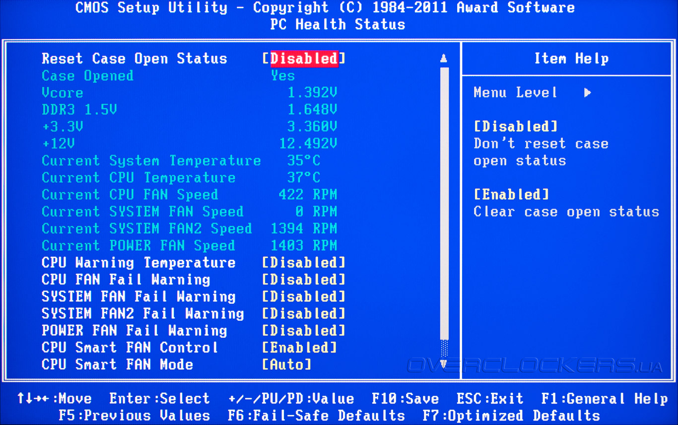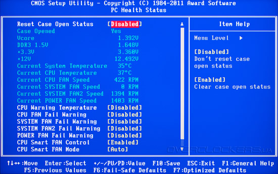 Для вывода показаний аппаратно мониторинга, а также управления вентиляторами служит вкладка PC Health Status. В этом разделе пользователь может контролировать четыре питающих напряжения, две температуры и скорости вращения четырех подключенных к материнской плате «карлсонов». Благодаря функции CPU Smart FAN Сontrol для крыльчатки процессорного охладителя можно задать режим работы в зависимости от температуры APU.