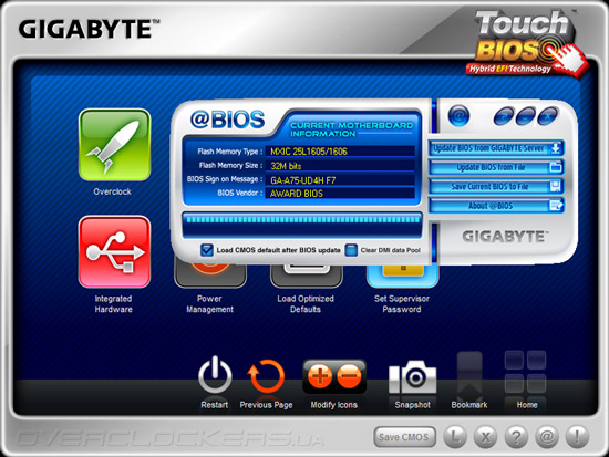Наконец, вместе с Touch BIOS пользователь получает небольшую, но очень полезную утилиту @BIOS, которая позволяет обновлять и создавать резервные копии управляющего микрокода прямо из операционной системы.