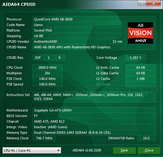 Для проверки разгонного потенциала и оценки производительности материнской платы GA-A75-UD4H был использован следующий набор комплектующих: