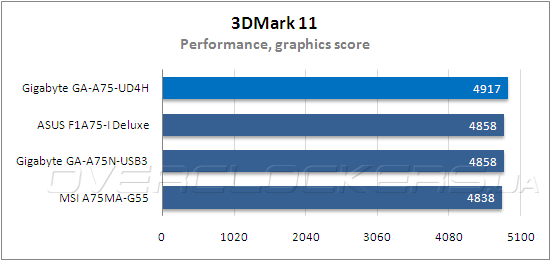 В графическом подтесте героиня сегодняшнего тестирования одержала победу, а при интенсивном использовании вычислительных ресурсов процессора и комбинированной нагрузке лишь немного уступила системной плате MSI A75MA-G55. Впрочем, в этом случае отставание новинки от лидера минимально, а больший удельный весь результатов тестового сценария Graphics позволил полноразмерной плате Gigabyte занять первое место в общем зачете.