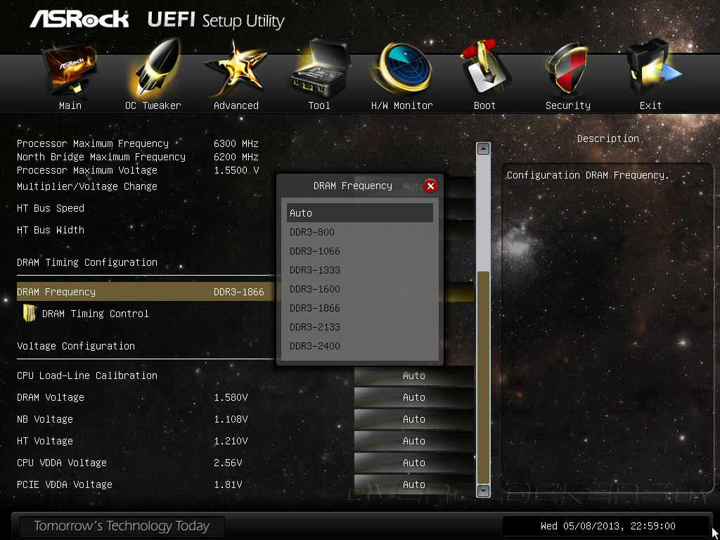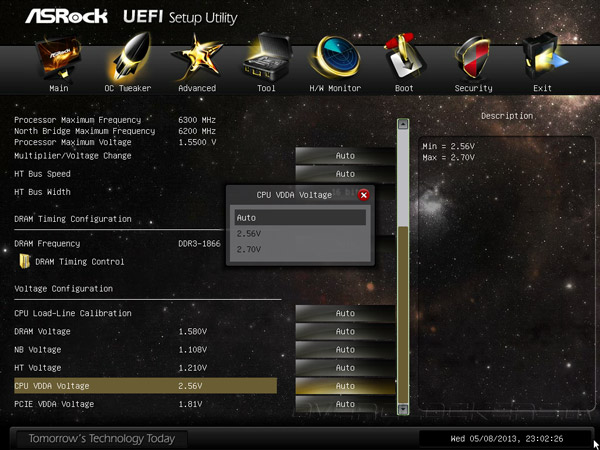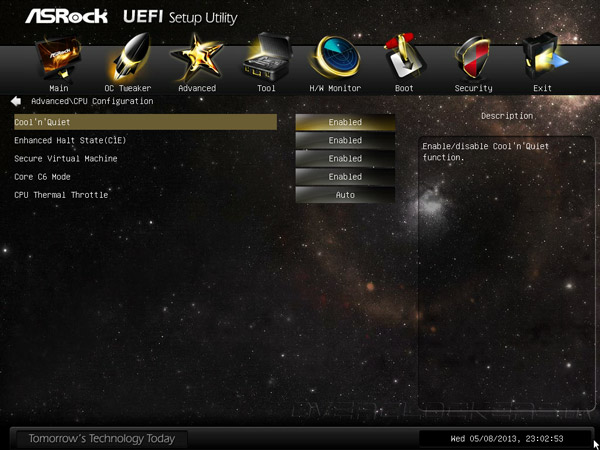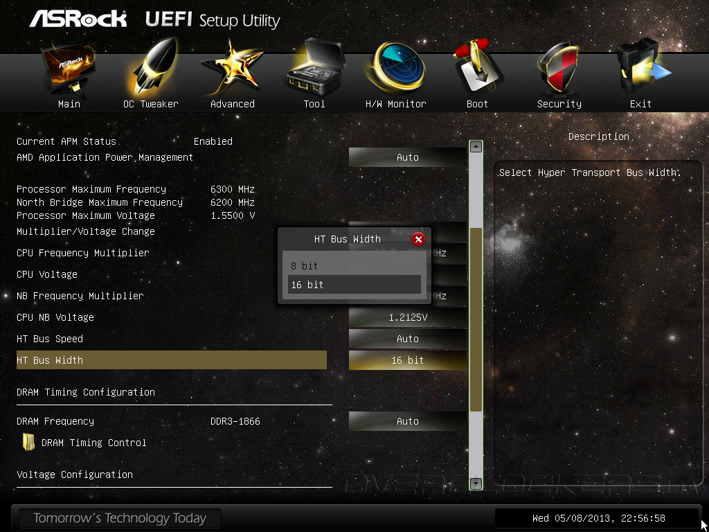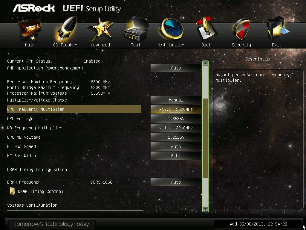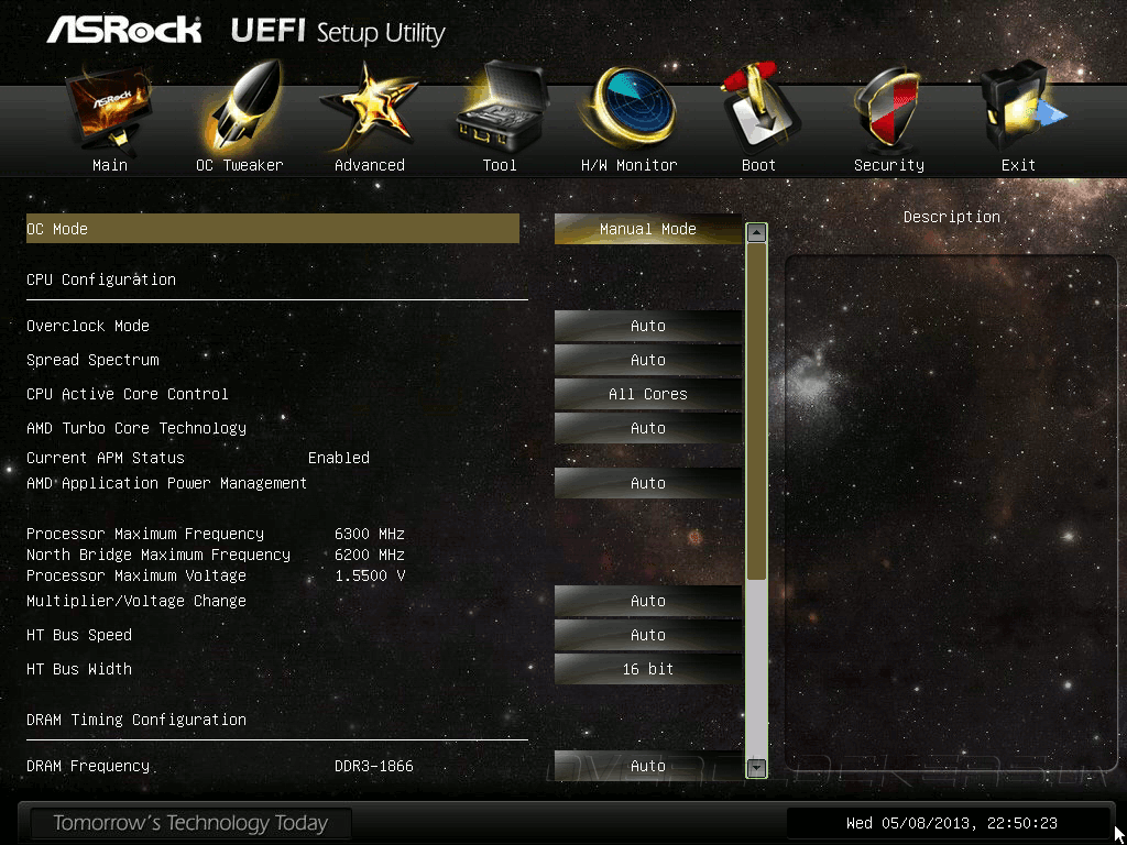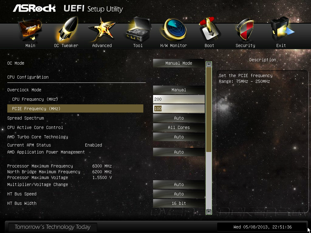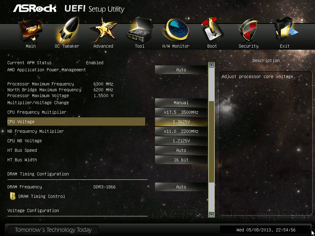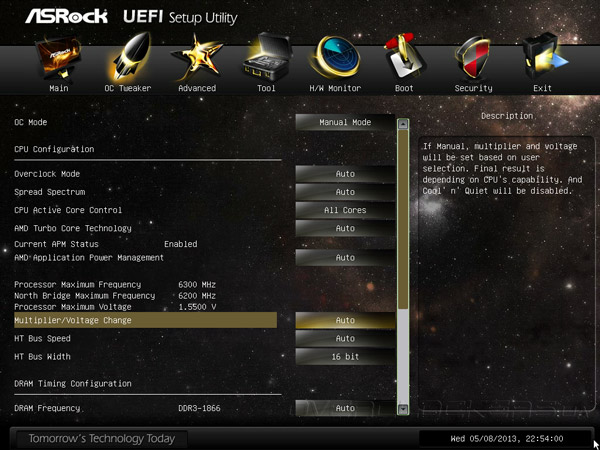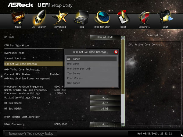 Привычно, что следом за пунктом Main находится OC Tweaker. Напоминаем, что стартовую страницу можно изменить в первой вкладке. Самый первый пункт позволяет воспользоваться некими профилями и в один клик разогнать систему, даже на 35%! По нашим сведениям не каждый процессор FX-серии способен на такое. Примечательно, что каждый из профилей обладает уникальным рецептом для достижения цели: повышаются не только множитель ЦП, но и напряжения, частота тактового генератора (или CPU Frequency в интерпретации ASRock) и даже частоты встроенного северного моста (NB) и шины HyperTransport!