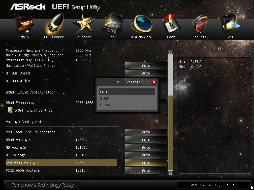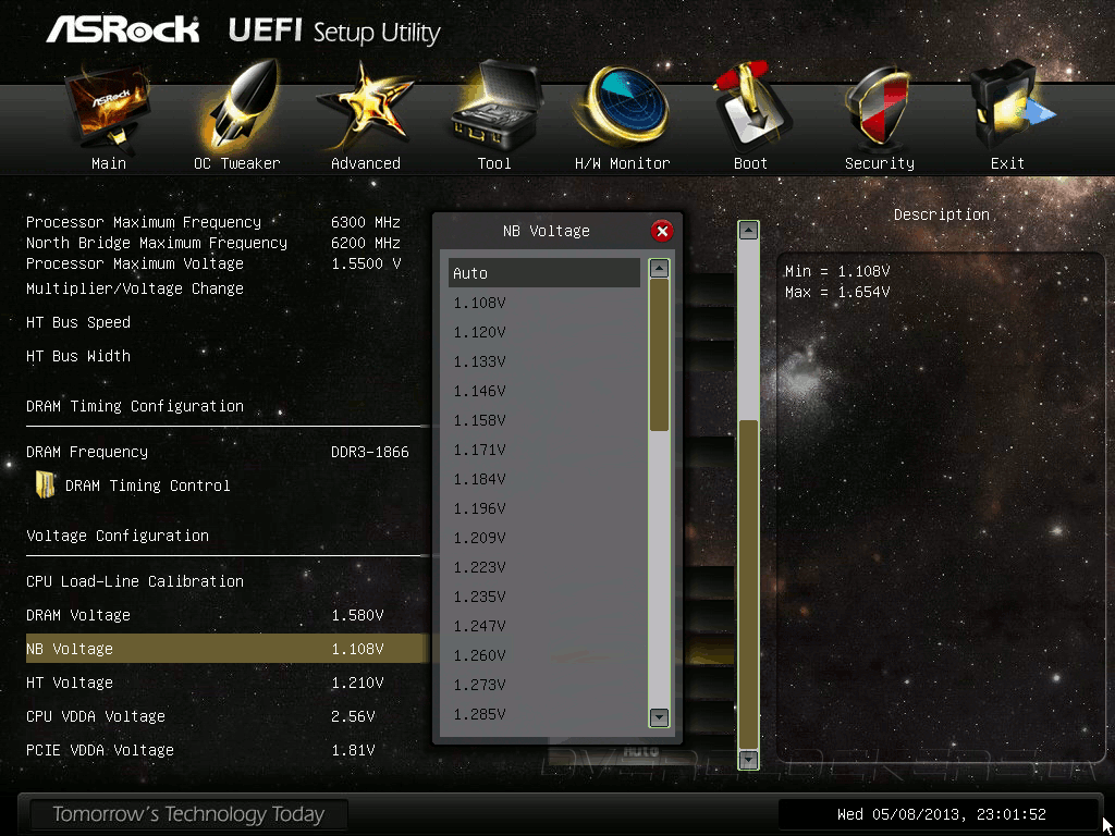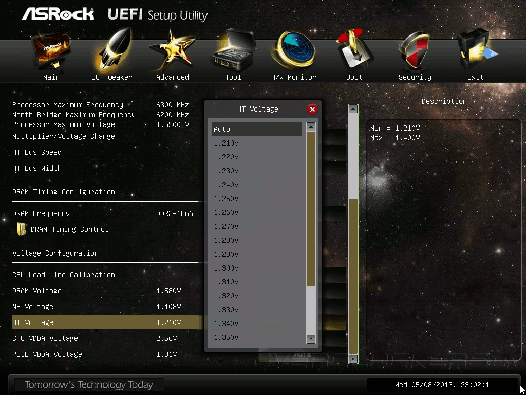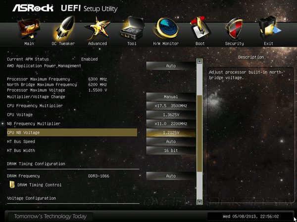 | CPU NB Voltage (В) | 0,6–1,55 | 0,0125 |