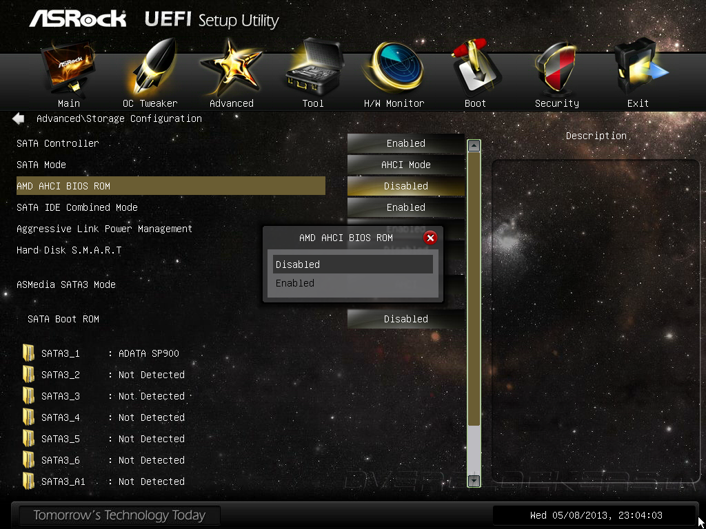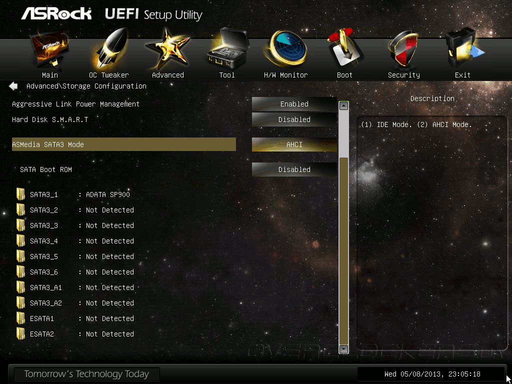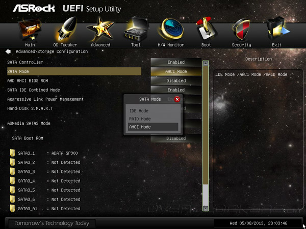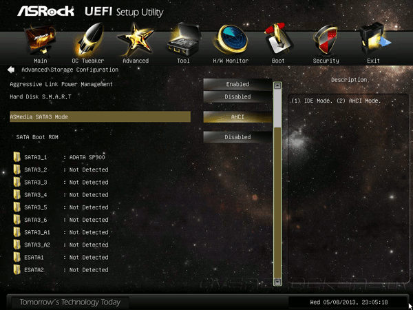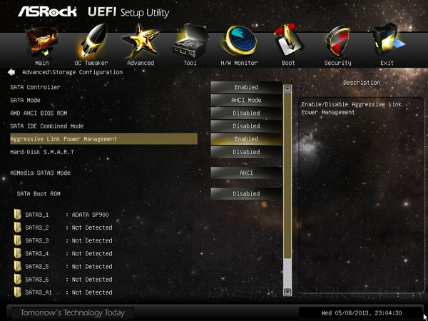 Перейдем к незначительным, но интересным моментам, что были обнаружены в UEFI. Отключение лишней подсветки уже встречалось нами в микрокоде от ASRock. Отметим широкие возможности управления конфигурацией накопителей.