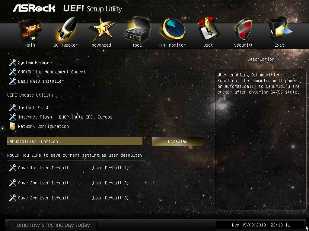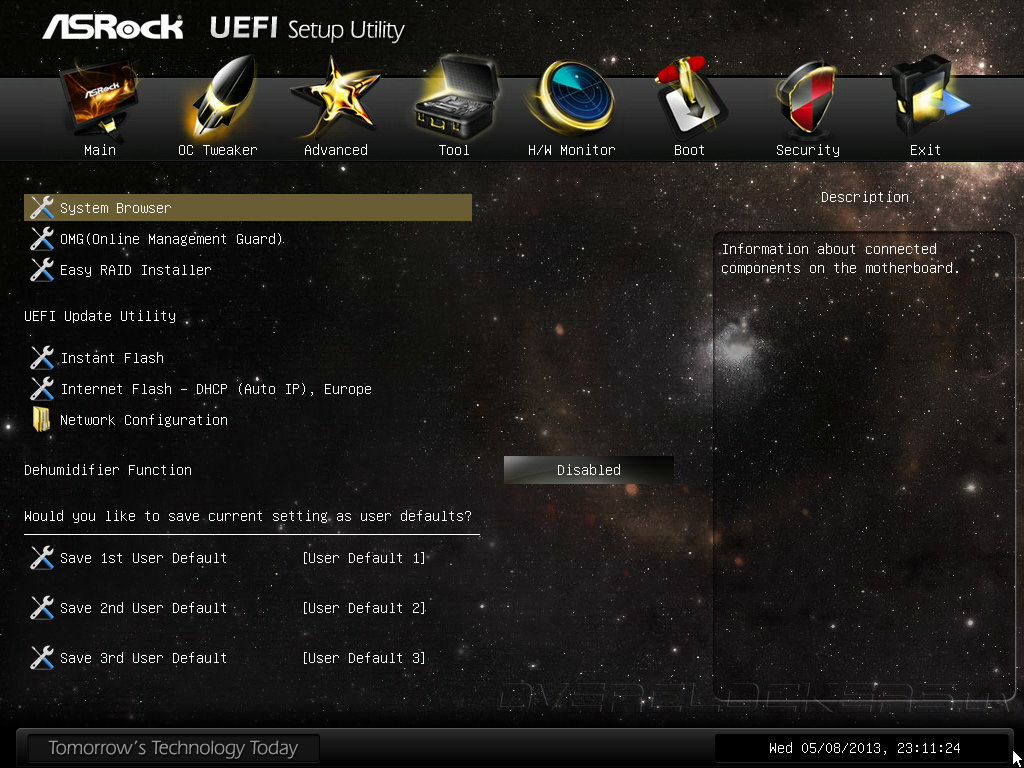 Во вкладке Tools можно выполнить сохранение текущих настроек в один из трёх профилей. Пожалуй, этого количества для платы такого уровня уже мало.