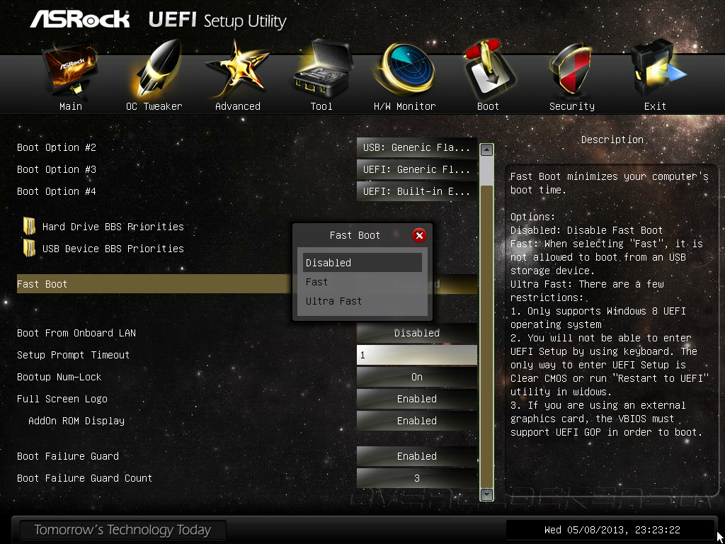 В завершение взглянем на возможностями платы по работе с быстрой загрузкой.