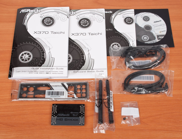 Комплект поставки напоминает таковой у чуть младшей по иерархии ASRock Fatal1ty X370 Gaming K4, посмотрим детальнее: