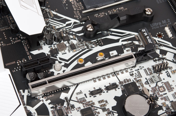 Расположение пары слотов M.2 достаточно удачное — над верхним PCI-E и в нижней части платы.