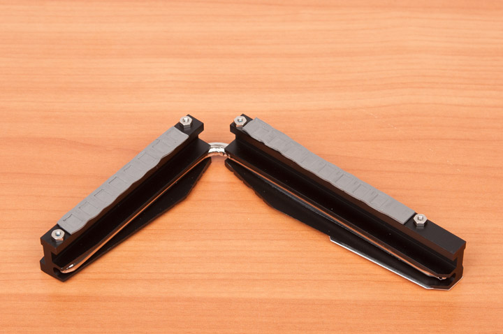 Пара радиаторов силовых элементов между собой соединена теплотрубкой, но такой приём скорее формальный, ведь она расположена практически у самой верхней части, а значит малая часть тепла будет передаваться от одного соседа к другому. Высота конструкции невелика, вряд ли появятся проблемы совместимости с охладителями под ЦП.