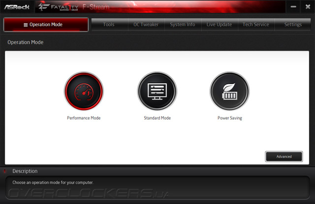 Как уже отмечалось, количество готовых профилей с преднастройками для проведения разгона в один клик весьма велико. Возможности UEFI и фирменной оболочки F-Stream задействуют несколько одинаковых механизмов, но всё же в последнем помощнике их три вместо двух вариантов в UEFI. К тому же неподготовленным пользователям разгонять систему удобнее будет в среде MS Windows путём использования приложения. Первый шаг — активация режима работы системы под названием Performance.