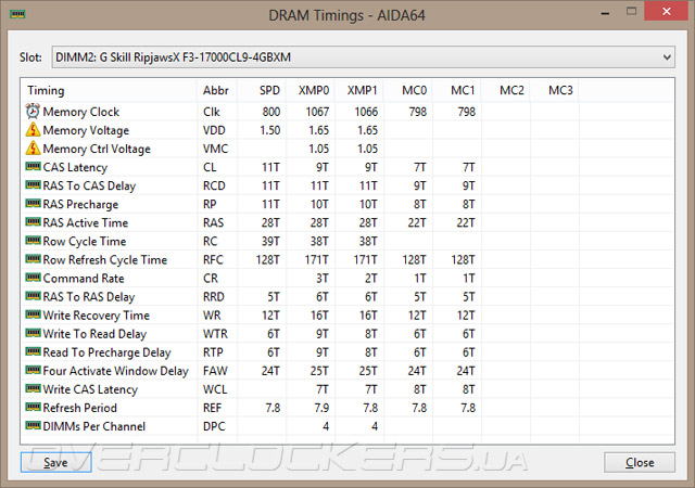 | DRAM Voltage (B) | 1,165–1,8 | 0,005 |