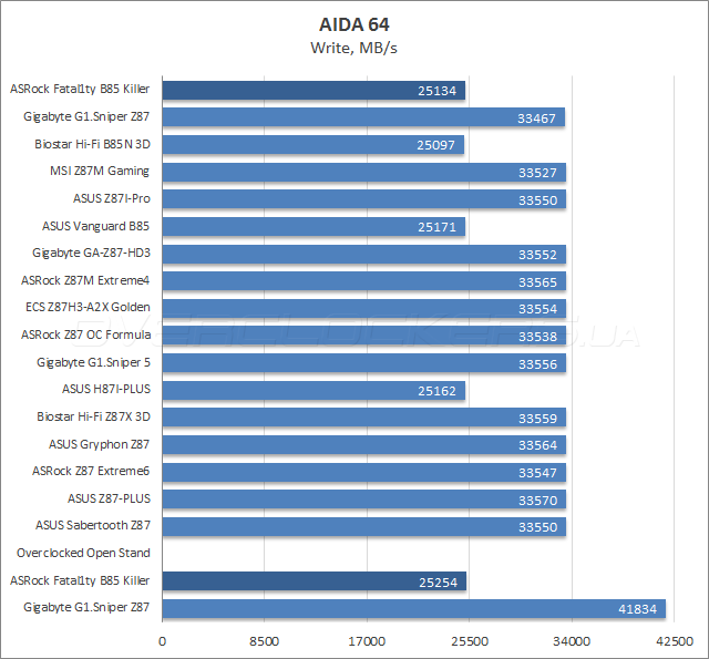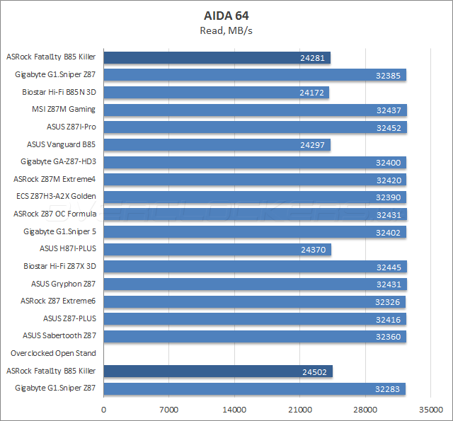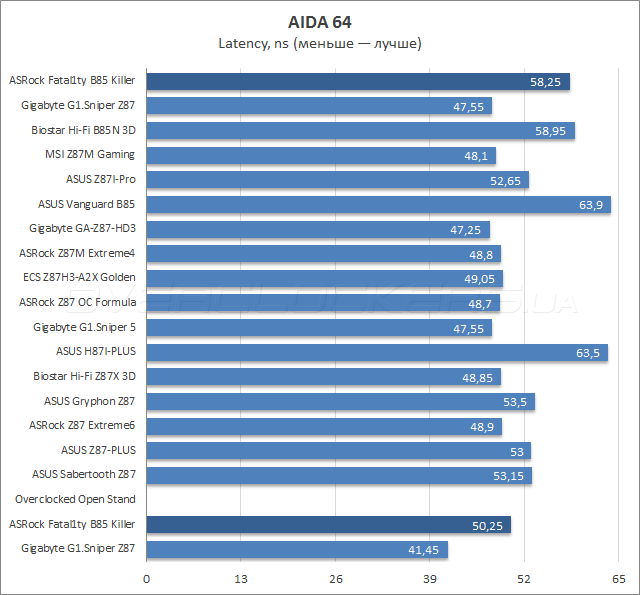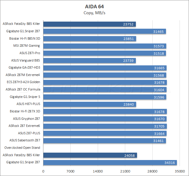 Агрессивный набор задержек нисколько не сказывается на итоговой скорости работы памяти, но ожидаемо снижает её латентность. Собственно, результаты Fatal1ty B85 Killer оказываются идентичными ранее продемонстрированным её одноклубниками.