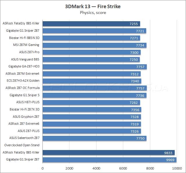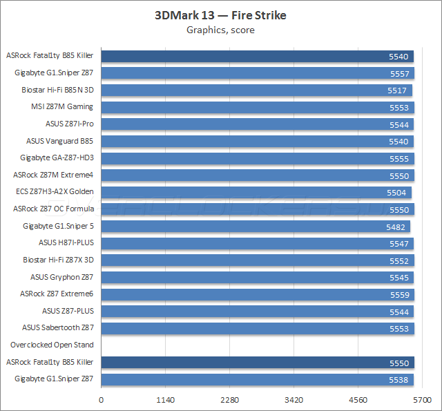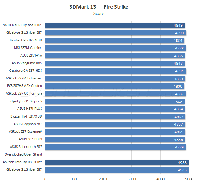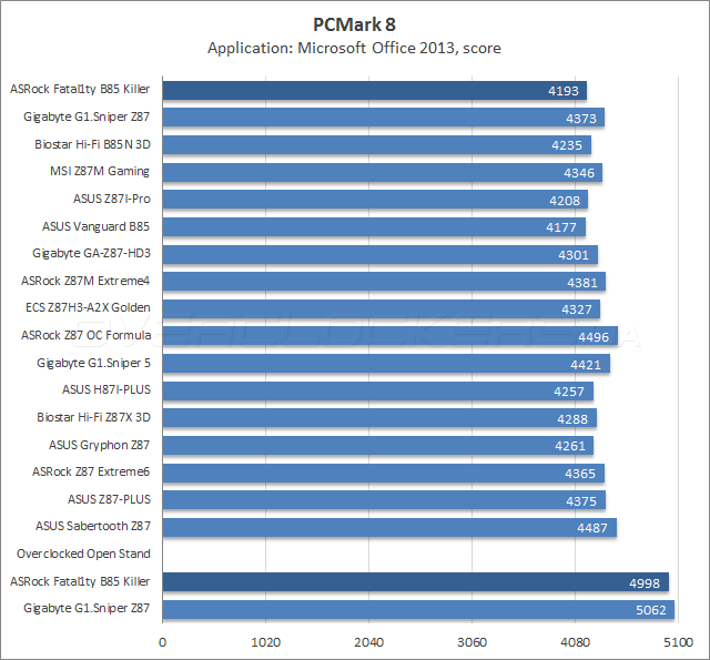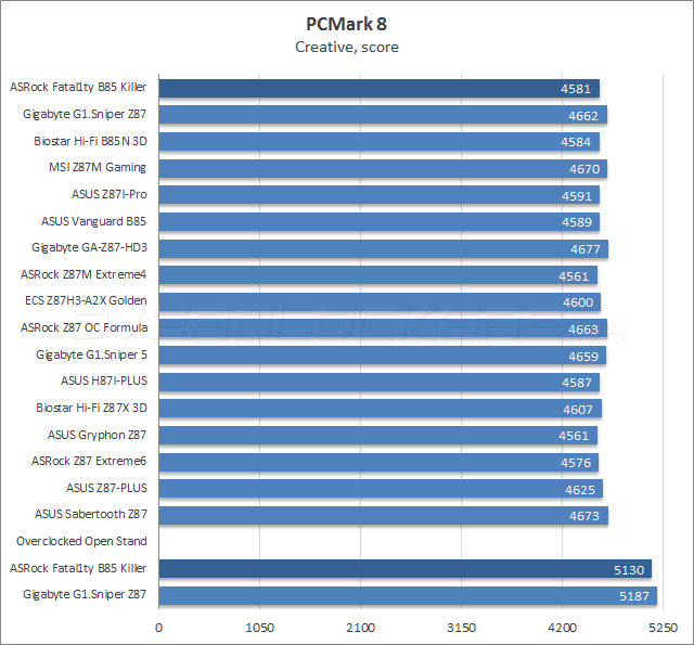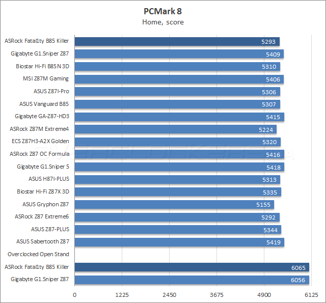 Отставание системы в PCMark 8 на базе B85 от продукции с лидером сегмента — Z87 — невелико, а с разгоном практически нивелируется.