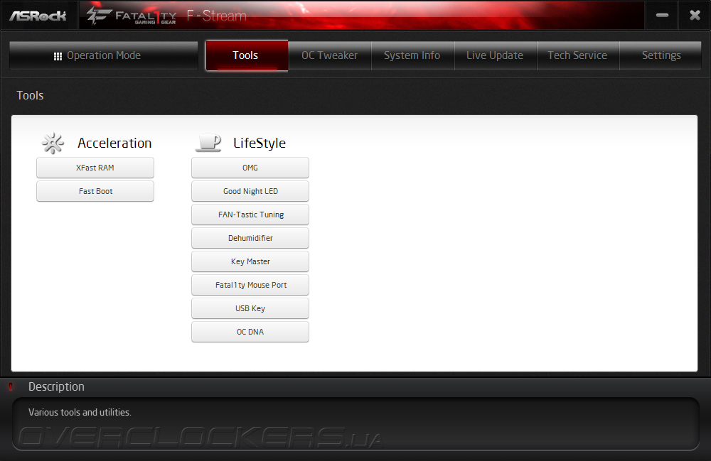 Весь набор фирменного программного обеспечения находится под контролем единой утилиты, которая для серии Fatal1ty Killer именуется как F-Stream. В обзоре Fatal1ty Z87 Killer мы уже останавливались на её содержимом, поэтому сегодня отметим лишь самые интересные моменты.