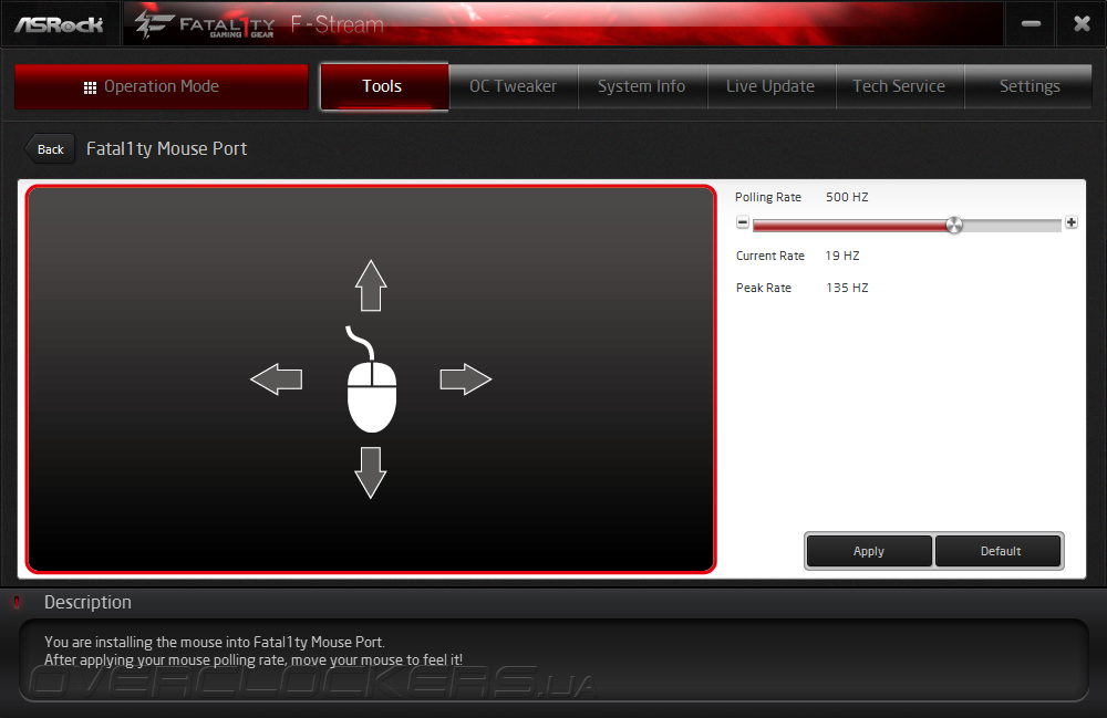 Следующее дополнение для мыши — Fatal1ty Mouse Port. Подключив манипулятор в соответствующее гнездо USB можно приступить к его тестированию. Всё что удалось «выжать» из тестовой А4Tech серии X7 видно на снимке экрана.